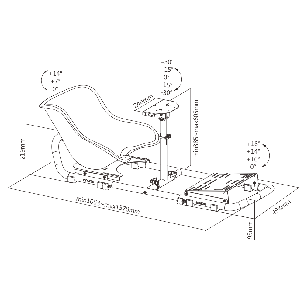 Supporto del volante di 2 mm di spessore con 5 posizioni di inclinazione -30°/ -15°/0°/+15°/+30° e un intervallo di regolazione in altezza di 21 cm.