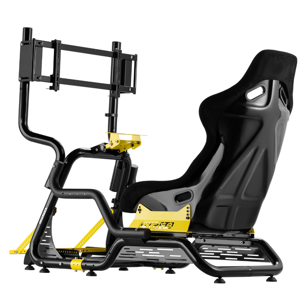 Le Cockpit de simulation GTR S8 YELLOW combine les dernières avancées technologiques de la marque en matière de Simracing et un design intemporel inspiré de l’univers de la compétition. Sa structure tubulaire en acier carbone haute densité avec un diamètre de 48 mm garantit une rigidité optimale, et les plaques de montage assurent une compatibilité totale avec les solutions des plus grandes marques telles que Fanatec®, Moza®, Thrustmaster®, Logitech®, Turtle Beach® ou Asetek®. Doté de nombreuses options de réglage, ce cockpit offre un poste de pilotage ergonomique adapté à divers modes de conduite, GT, Drift, F1 et Rallye.